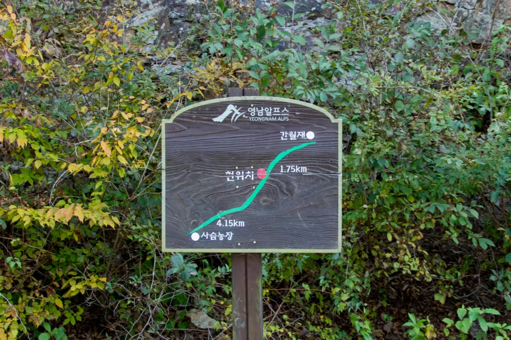 이정표에 간월재 1.75km라고 찍혀 있는 지점이 나옵니다.