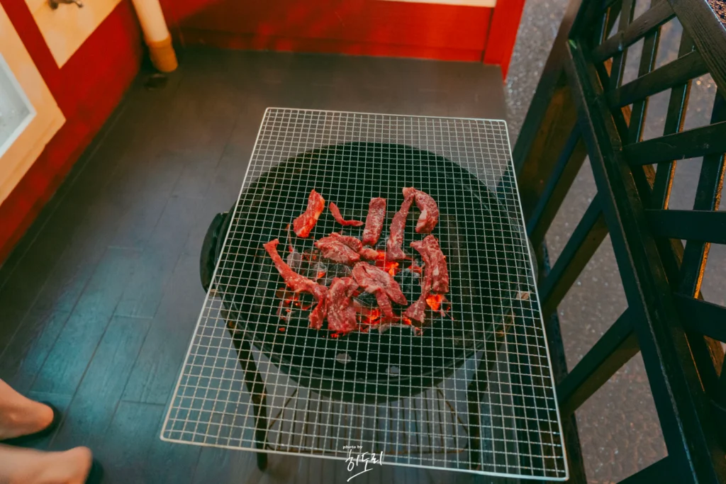 - 사장님 친절: 비가 와서 야외 바베큐를 못할 뻔했지만, 사장님이 배려해 테라스에 불판을 준비해주셨답니다.