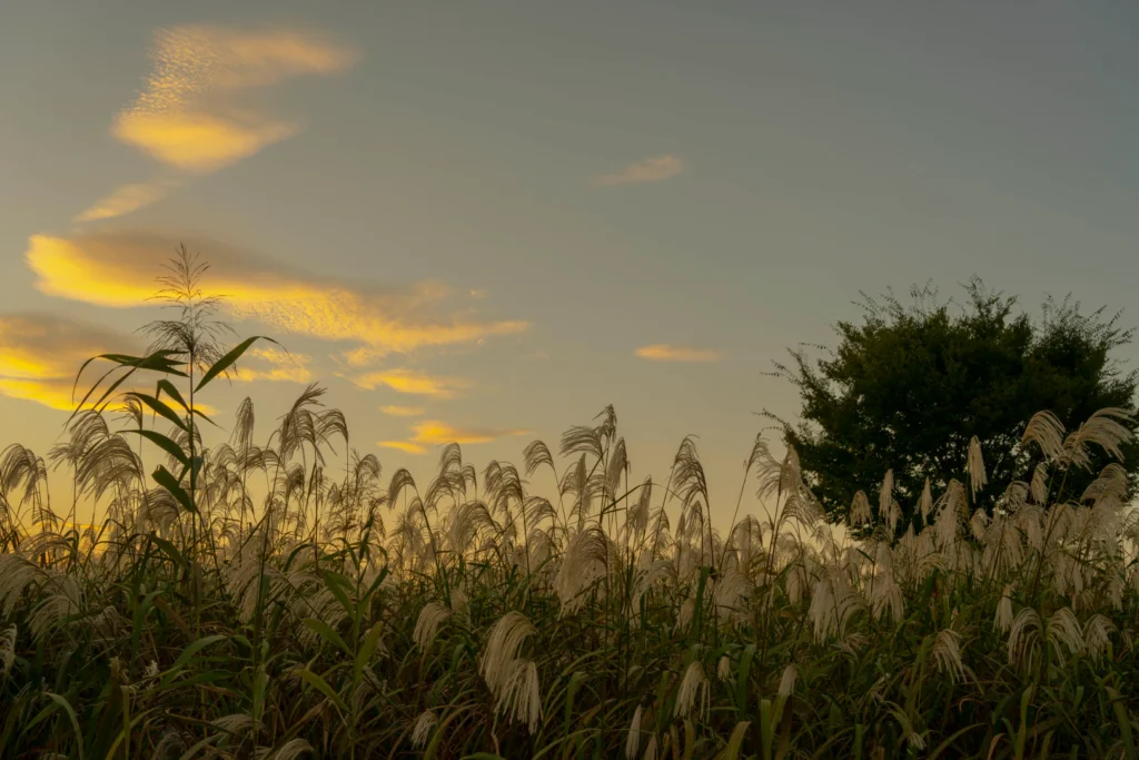 해가 서쪽으로 지며 갈대를 비추는 시간대입니다.