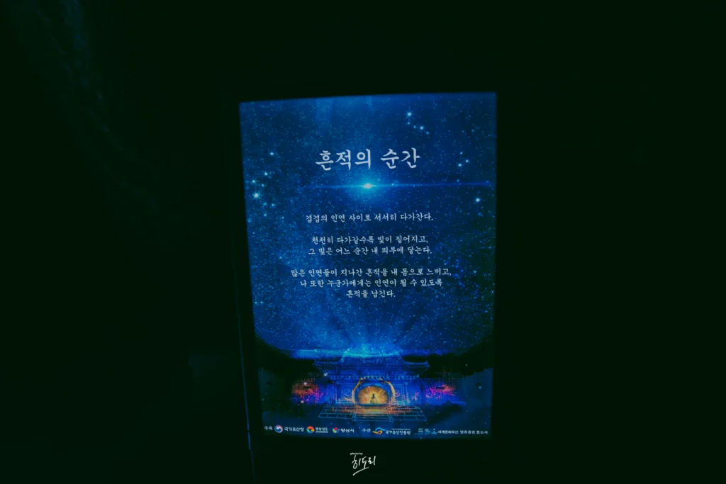 개인적으로 흔적의순간 미디어 아트가 가장 마음들었어요.