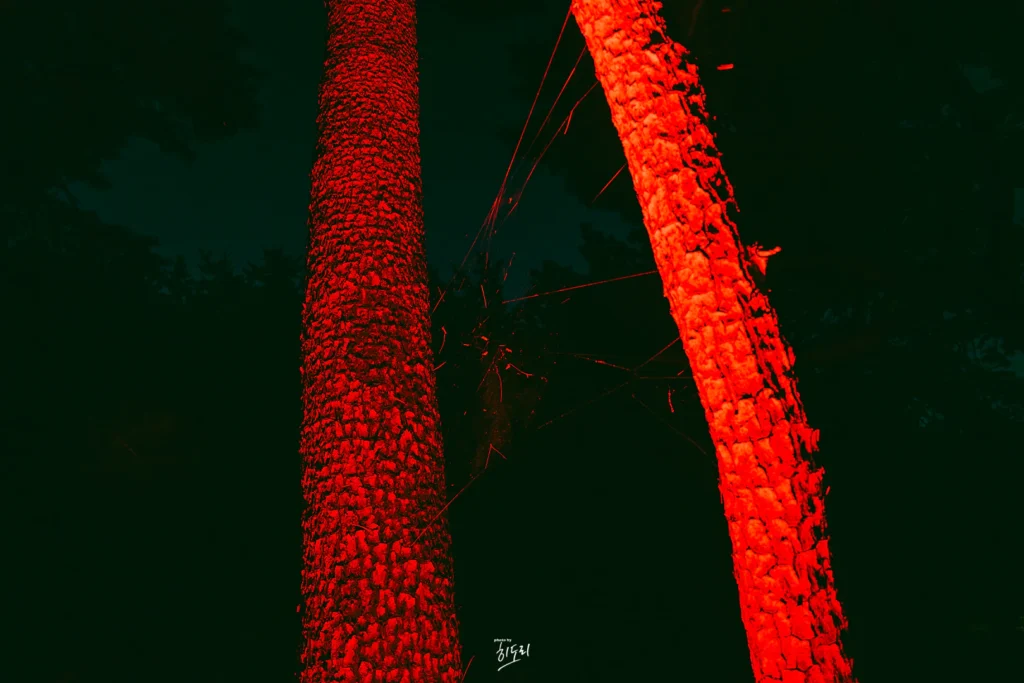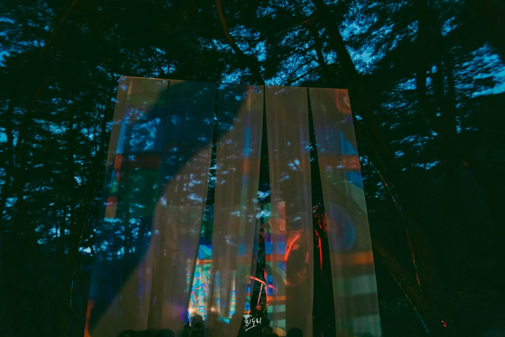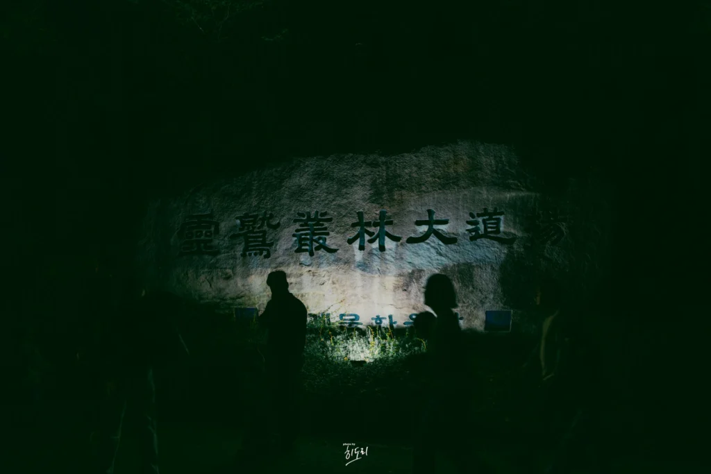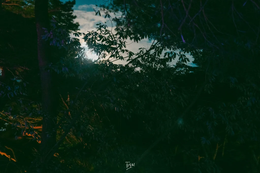 고요한 산속의 어둠 속에서 은은히 켜지는 조명은,