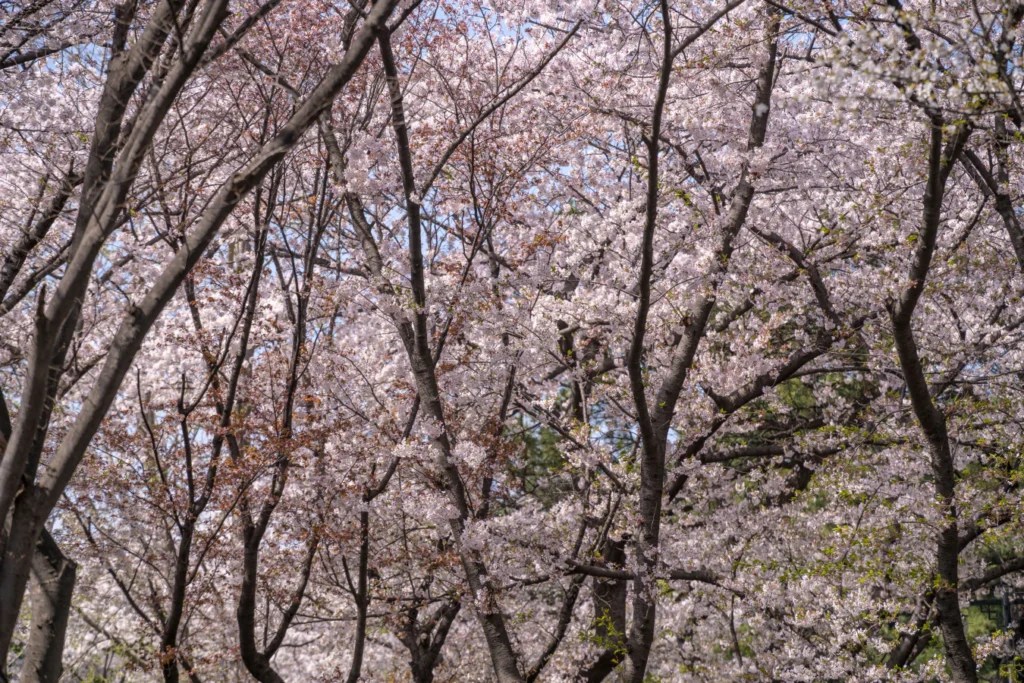 벚나무들이 만들어내는 시원한 꽃 그늘은 봄의 절정을 상징하며, 그 아래에서 봄날의 정취를 만끽하며 잠시 도심속 공원에서 여유를 부려보았습니다.