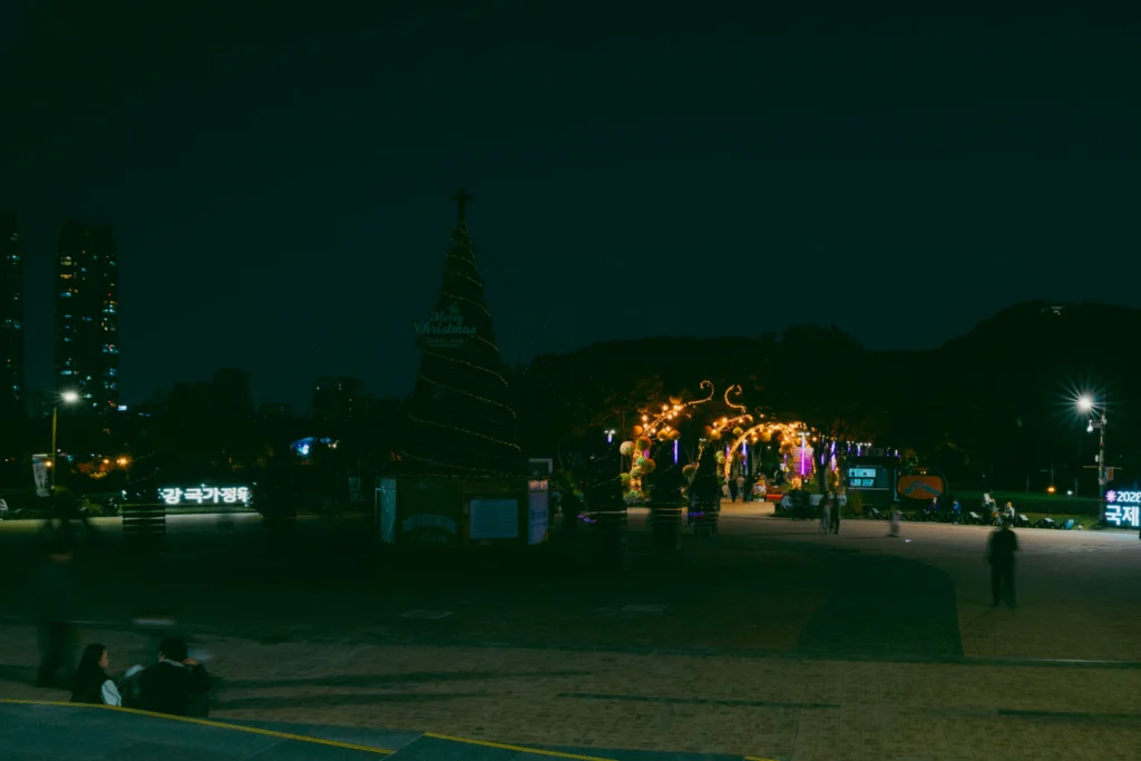 트리가 켜지길 기다리며, 울산의 밤이 숨을 죽인 시간