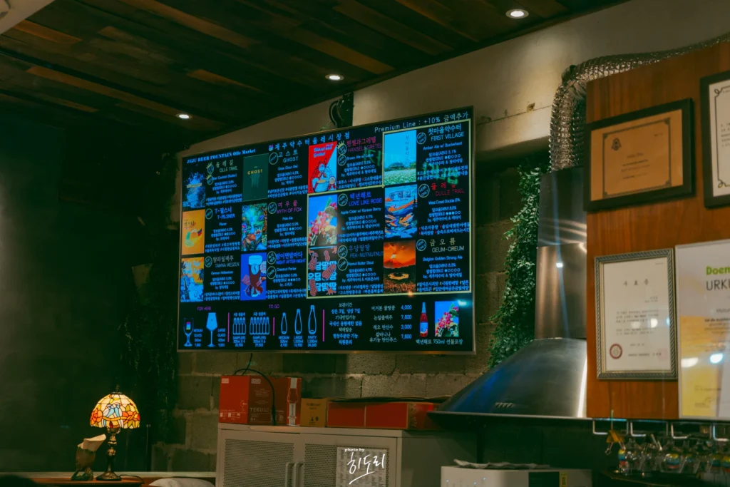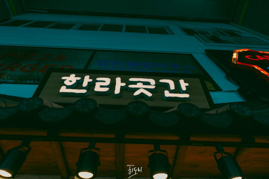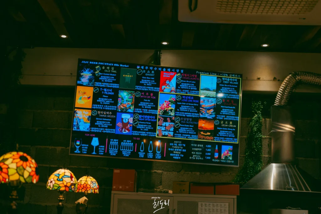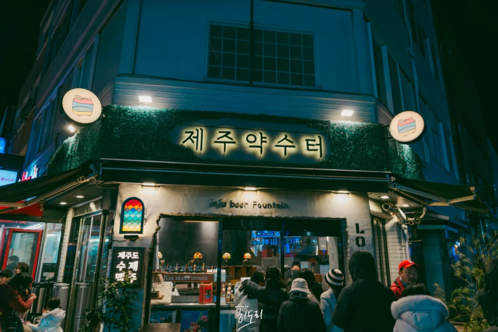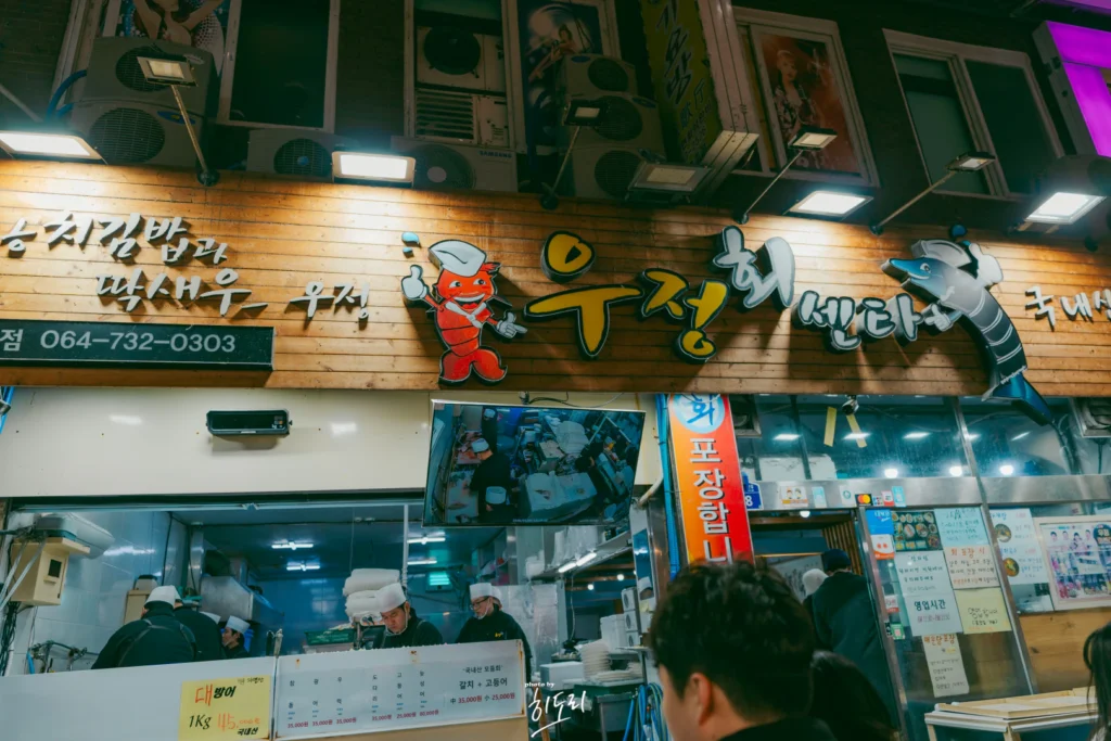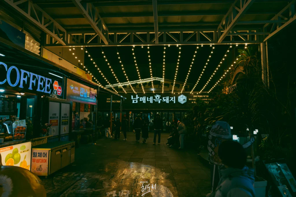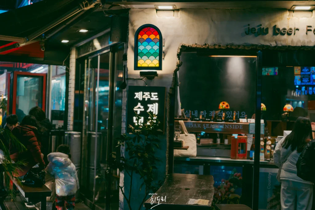 The moment you step inside, colorful signs and warm lights hit you with that unmistakable Jeju feeling.