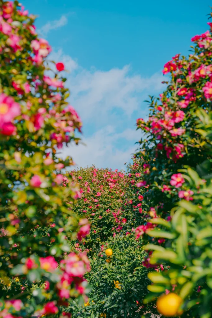 I visited in early January, which is right in the peak season for camellia blossoms.