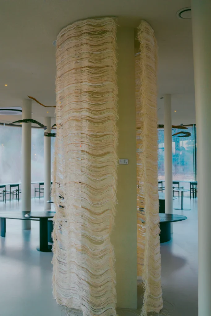 Inside migiui, the main lounge opens with floor-to-ceiling windows, delivering stunning sunlight and forest views.