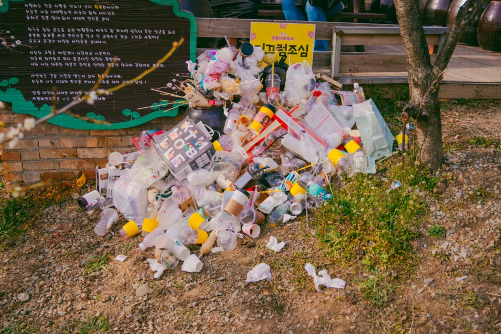 Unfortunately, some visitors leave trash behind in the orchard.